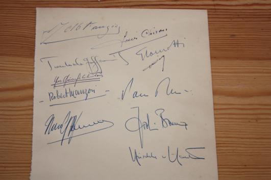 Avec en plus les signatures de Huschke v. Hanstein dont je vous ai parlé dans un autre article de mon blog et celle de Joakim Bonnier, présent à la soirée, qui avait signé mon livre bien que non membre de l’amicale puisqu’il était encore actif dans les Grands Prix de F1 à cette époque !